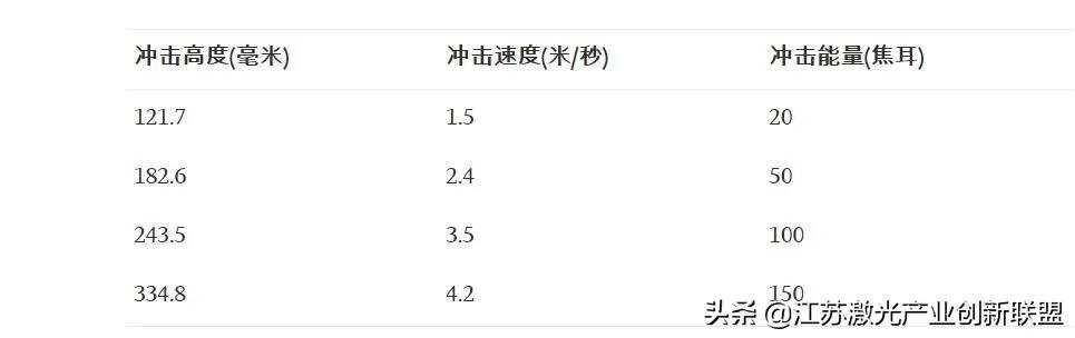 ▲表1. 撞击高度、速度和相应撞击能量的总结
